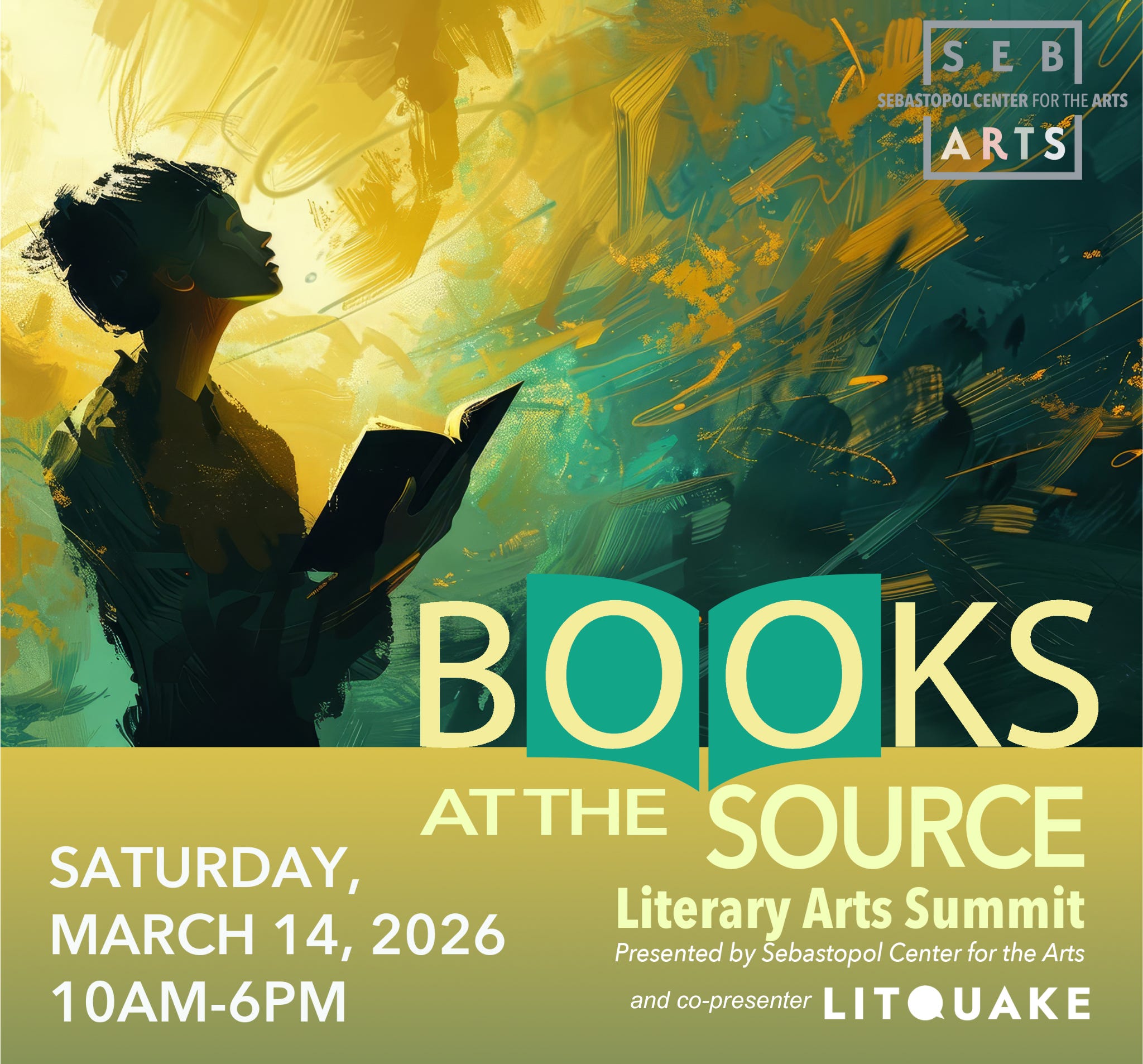 Books At The Source Writing Summit. Saturday, March 14. Sebastopol Center for the Arts. 282 S. High Street, Sebastopol, CA.
